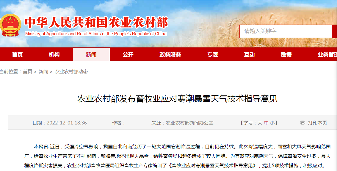 速看!農業(yè)農村部發(fā)布畜牧業(yè)應對寒潮暴雪天氣技術指導意見