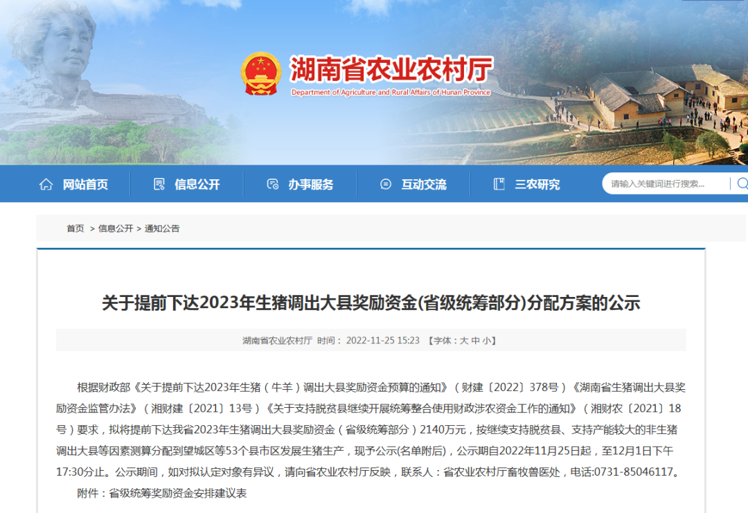 好消息!2023年生豬調出大縣獎勵提前下達!河南、湖南、海南都發了,最高3.4億!